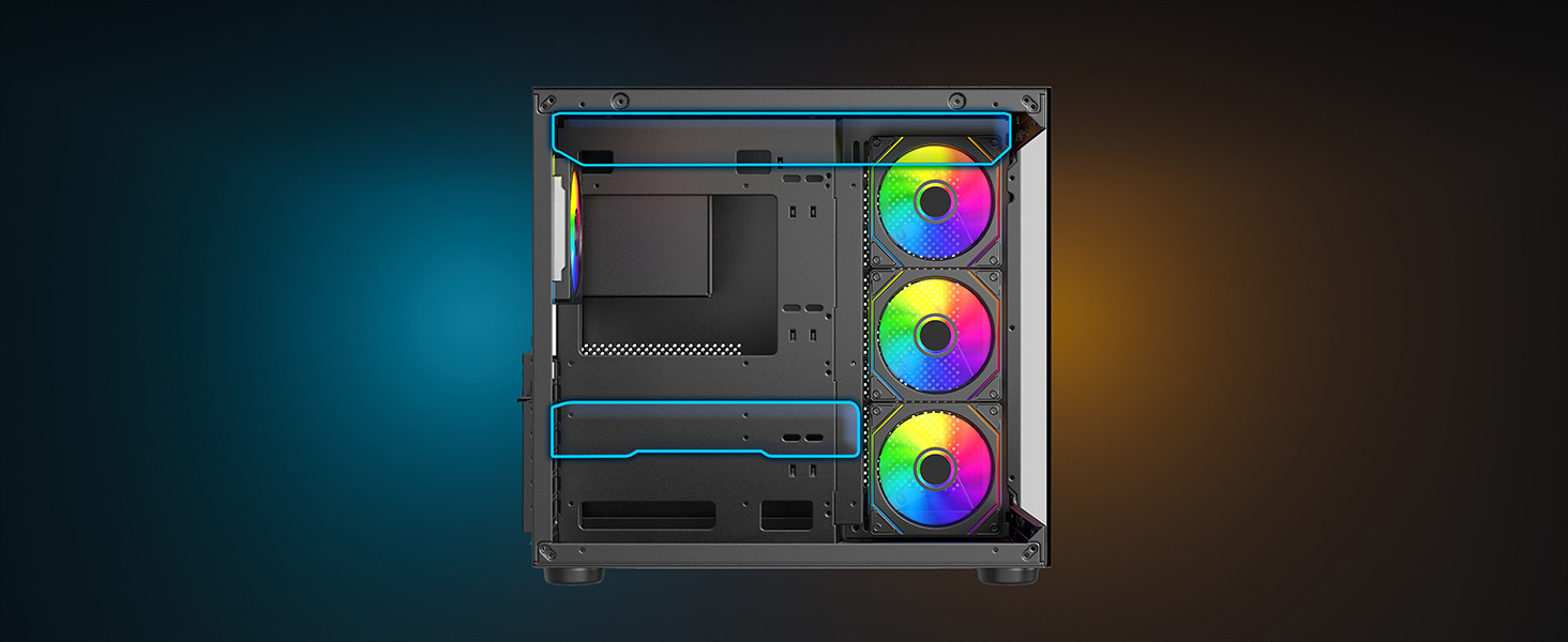 4 adet dahili ARGB infinity fan ile donatılmış Stark S800, 10x 120mm fana kadar destek sunar. Hava akışını en üst seviyeye çıkarın ve maksimum soğutma performansına ulaşın!