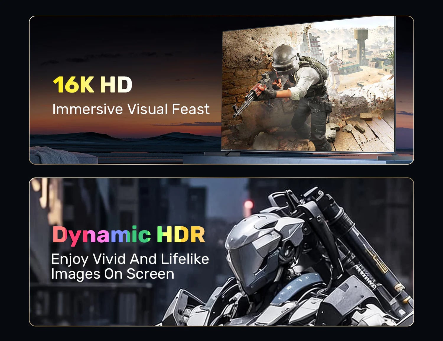 Makks. Çözünürlük 16K@60Hz, 8K@120Hz, 4K@240Hz
